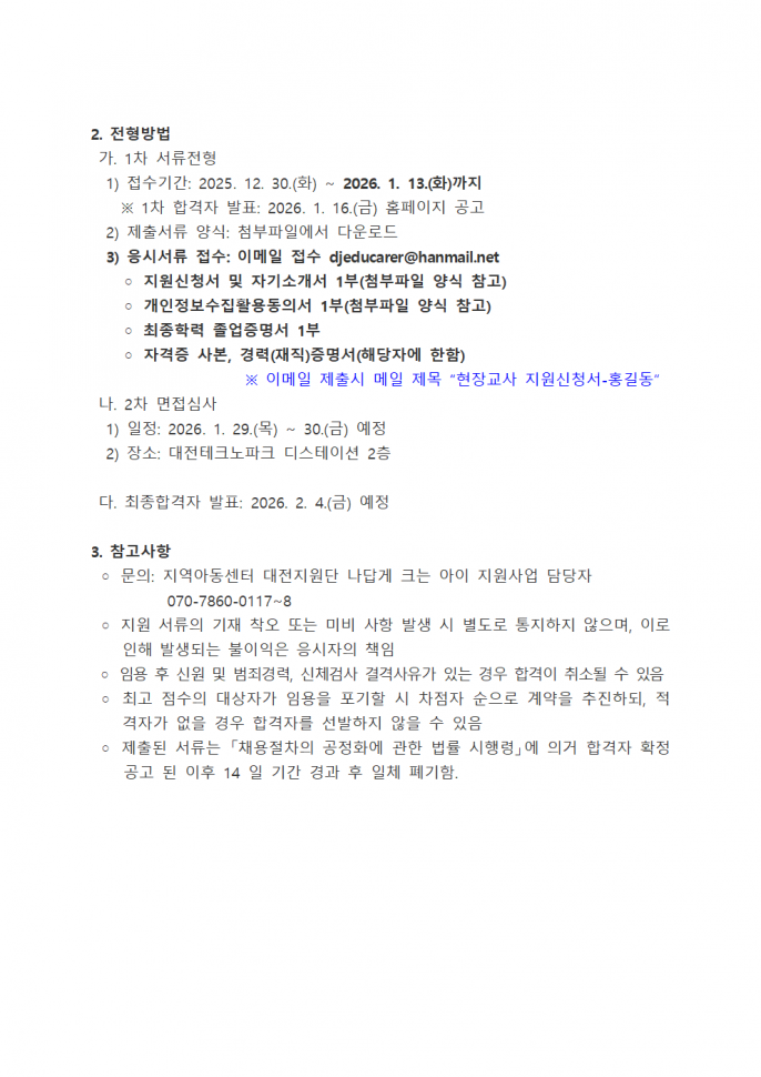 [공지] 2026 나답게크는아이 현장교사 채용 공고(연장)