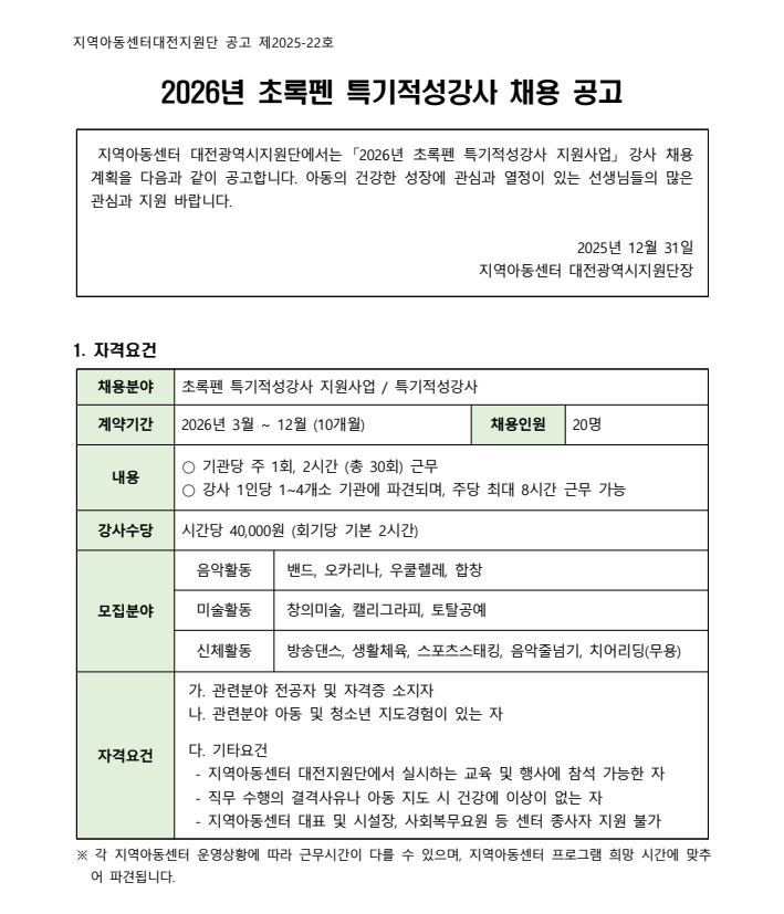 [공지] 2026 나답게크는아이 현장교사 채용 공고(연장)